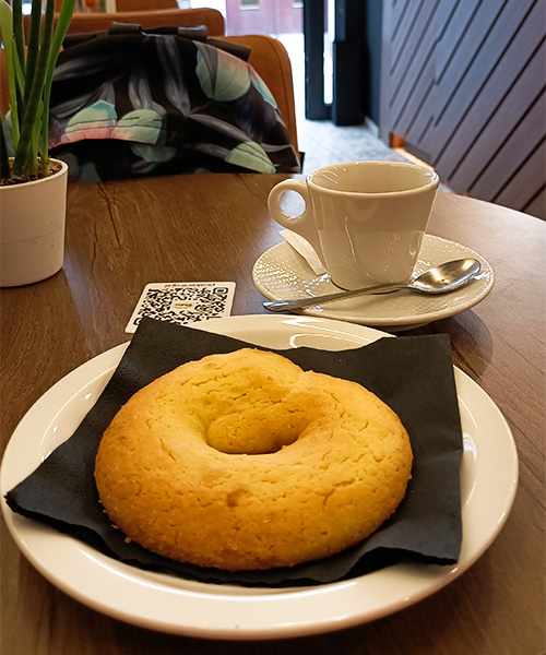 Ecco, se vuoi sapere cosa mangiare a Capodistria, sappi che io inizio dai dolci: decido di assaggiare i bussolai, biscottoni secchi dall'aroma vanigliato di origine buranese. Il nome deriva infatti da "buso", che in dialetto veneziano significa "buco", e si riferisce alla tipica forma a ciambella del biscotto. Nell'invitante vetrina del locale scorgo anche la kremšnita - la torta di Bled - e i koprski piškot (biscotti di Capodistria), che sono simili alle nostre brasiliane, ma hanno anche una copertura al cioccolato. Una meraviglia con il caffè!