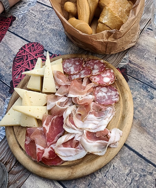 Prima dell'ingresso alla mostra abbiamo ordinato dei crostini con la mortadella, una vera bontà! A pranzo, invece, abbiam ordinato un tagliere con affettati e formaggi misti e un bel piatto di cjarsons della tradizione. La ricetta del ripieno è segreta, ma contiene erbe e uvetta...da leccarsi i baffi!